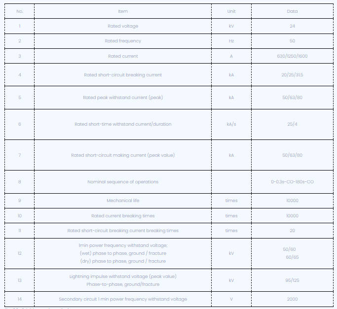 Husbryteren er i samsvar med tekniske standarder som GB1984-2003 høyspenning AC-effektbryter, DL T402-2007 Tekniske forhold for bestilling av høyspenning AC-effektbryter og DL / T403-2000 Tekniske forhold for bestilling av 12kV ~ 40,5kV høyspenningsvakuumskrak.