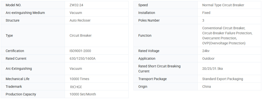 ZW32-24 Utendørs AC Høyspenningsvakuumskretsbryter (heretter referert til som effektbryter) er nominell spenning på 24 kV, 50Hz trefaset AC utendørs strømfordelingsutstyr.
