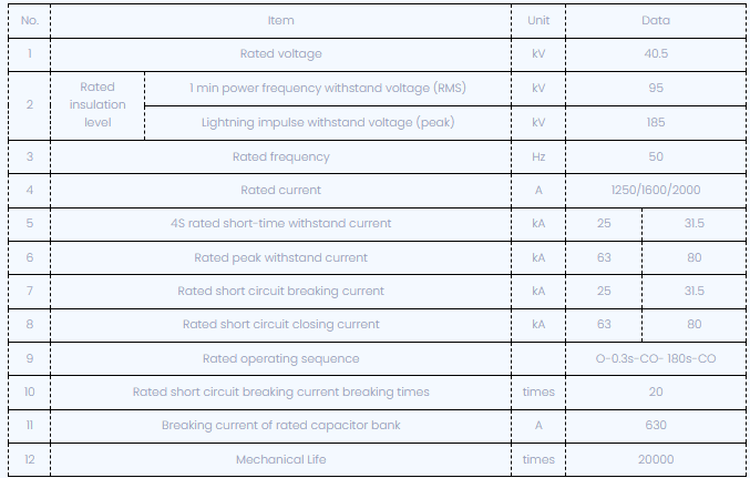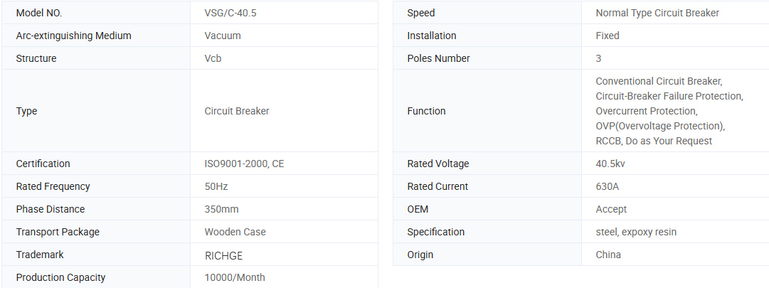 VSG-C/40.5 Type sideinstallasjon Innendørs Høyspenningsvakuumskretsbryter Brukt fjær til lagringsenergi. Driftsmekanismen kan betjenes på to måter, ved manuell og elektromotiv drift, er egenskapene i henhold til GB1984-2003 høyspenning AC-effektbryter, JB3855-1996 3.6-4.5KV innendørs AC High Voltage AC Circuit Breaker and I IEC Standard 62111-1-100: