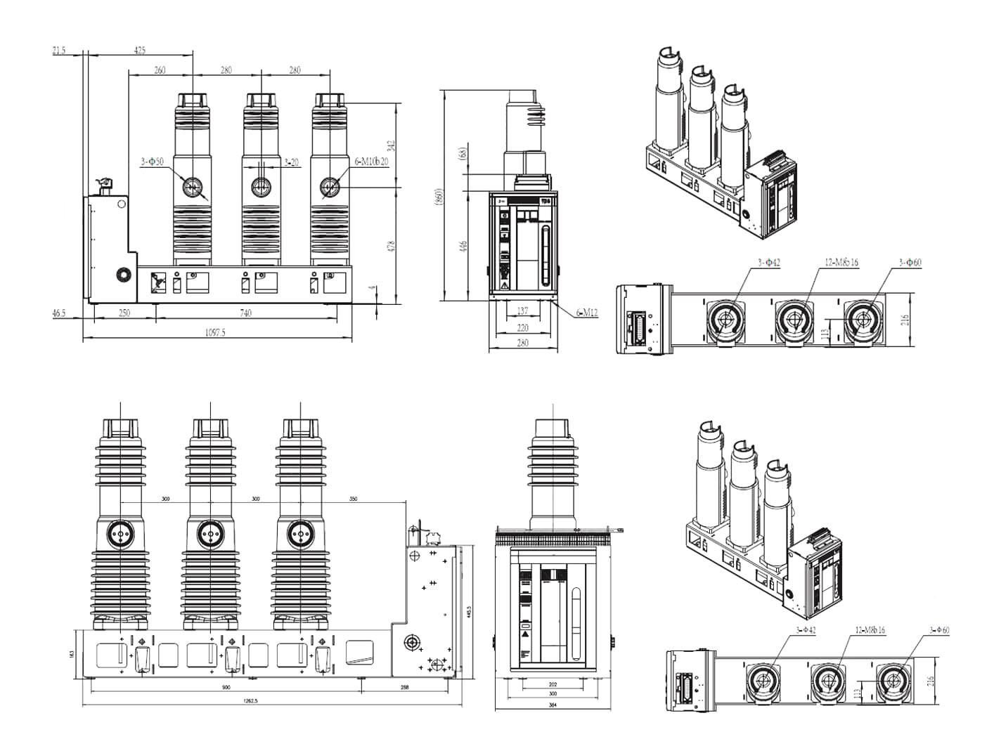 36kV innebygde stolper med øvre utløpssidemontert type innendørs vakuum effektbryter