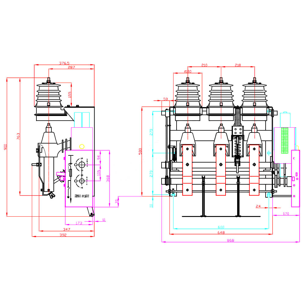FKN12-12D/630-20 innendørs AC høyspenningslastbryter er et trefaset høyspentbryteranlegg med en merkespenning på 12KV og en merkefrekvens på 50HZ. Den brukes til å bytte laststrøm, lukket sløyfestrøm, tomgangstransformator og kabelladestrøm, av kombinert kortslutningsstrøm. Belastningsbryteren utstyrt med jordingsbryteren tåler kortslutningsstrøm. og brukes hovedsakelig i kraftdistribusjonsstasjon og industrielt elektrisk utstyr hvor trefaset lukket krets eller bunnstrømforsyningssystem for kontroll og beskyttelse.