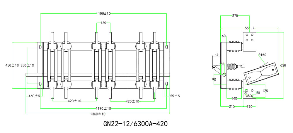 Dette produktet er en høystrøms skillebryter med en trefaset felles bunnknivstruktur. Den tar i bruk en mekanisk låseprototype med en to-trinns handling av lukking og kontakt, oppnå slitasjefri kontakt, liten driftskraft, høyt kontakttrykk og god dynamisk termisk stabilitet.
