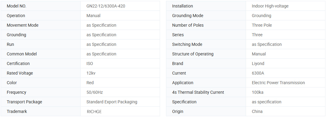 GN22-12 (C) (D) serien innendørs høyspenningsfrakobling høyspenningsbryter brukes i kraftsystemer med merkespenning på 12kV, 50Hz og lavere, for å koble til, frakoble eller konvertere linjer under spenning, men uten belastning.