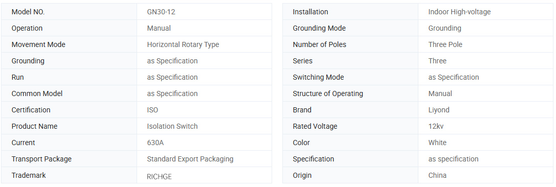 GN30-12 innendørs roterende høyspenningsfrakobling er en ny type med roterende kniv. Den viktigste strukturelle formelen er å fikse to sett med isolatorer og kontakter på øvre og nedre plan av den trefasede felles lave rammen, og realisere åpningen og lukkingen av bryteren ved å rotere kniven. GN3-12D bryter legger til en form for koblingskniv på grunnlag av GN30-12 for å møte behovene til forskjellige kraftsystemer. Dette produktet er kompakt i design, liten plass, sterk i isolasjon, lett å installere og justere. Den oppfyller kravene til "AC-høyspenningsbryter og jordingsbryter", og er anvendelig for innendørssystemer med merkespenning opp til 10 KV AC 50 Hz og lavere. Den kan brukes som åpnings- og lukkekrets når det er spenning og uten belastning. Den kan brukes med høyspenningsbryter eller kan brukes alene.