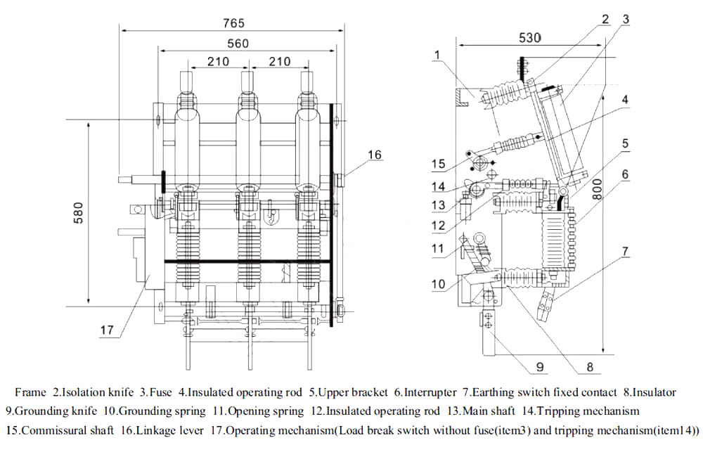 FZRN21-12D/T125-31.5 Innendørs høyspenningsvakuumbelastning Bryter-Fuse-kombinasjon ELEKTRISK APPLICTION har stor bruddkapasitet, sikkerhet og pålitelighet, og lang elektrisk levetid, det kan betjenes ofte, strukturen er kompakt, volumet er lite, vekten er lys, og vedlikeholdet er i utgangspunktet ubeskyttet. Det kan beskytte transformatoren mot overbelastning og forhindre at utstyret går tom for fase. Det har åpenbar isolasjonsbrudd. Den kan utstyres med jordingskniv og elektrisk vårmekanisme med lukkeevne, og den kan kontrolleres eksternt.