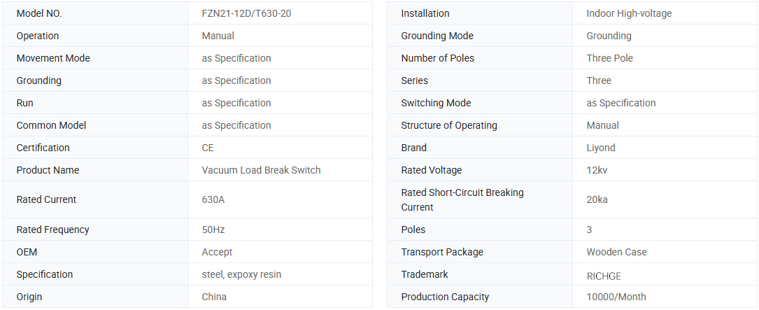 FZN21-12D/T630-20, FZN21-12DR/T125-31.5 Type Høyspent Vacuum Load Break Switch og sikringsbryteren opererer i trefase AC elektrisk 12kv, 50Hz kraftfordeling, FUSS, med en kompakt, liten størrelse, lett vekt, lang levetid, høy og byttesikringsevne, sikker og sikker og sikker og sikker og sikker og sikker og sikker og trygg og sikker og sikker og sikker og sikker og sikker og trygg og trygg og en kompakt. Kostnad, enkel og praktisk drift og vedlikehold