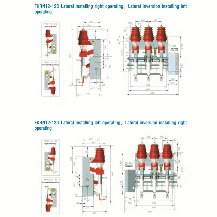 FKN12-12D Series Air-BLAST IOAD BREAK SWITCH og FKRN12-12D Series Air-Blast Load Break Switch-Fuse Combination Apparatus Are Ny serie Switchgear gjelder tre-fase elektriske distribusjonssystem for nominell 12 kV, og fungerer som beskyttelses- og kontrollapparater for transformatorer, kabel og overhode ledning. Disse seriene er spesielt anvendelige i landlige, urbane terminalstasjon og prefabrikkerte transformatorstasjoner, samt strømforsyning for ringnettverk. FKN12-12D kan bryte og gjøre ioad aktuell og overstrøm. FKRN12-12D kan bryte og gjøre overstrømbelastningsstrøm og kortslutningsstrøm (IIMITED strømsikring). Dette produktet er omtalt med estetisk utseende. Pålitelig sammenlås og høyt isolasjonsnivå. I vårlagringsdriftsmekanismen er av/på -hastighet fri fra arbeidskrafts innflytelse. For bue-slukkende, elektriske bue-legges ut inne i isolasjonsdekselet, forårsaker den frie gassen ved gnist ikke nedstigning av isolasjonsnivå mellom faser og fase til jorden. Isolasjonsdekselet klappetavle skiller elektrifisert del dermed øker beskyttelsesgraden for Ring hovedenhet. Kobber-tungsten-kontakten og hovedkontakten gir pålitelig ledningsevne og lang levetid. Dette produktet oppnår lydberømmelse på grunn av enkel vedlikehold og drift samt pålitelig ytelse. Det er i samsvar med IEC62271-105.