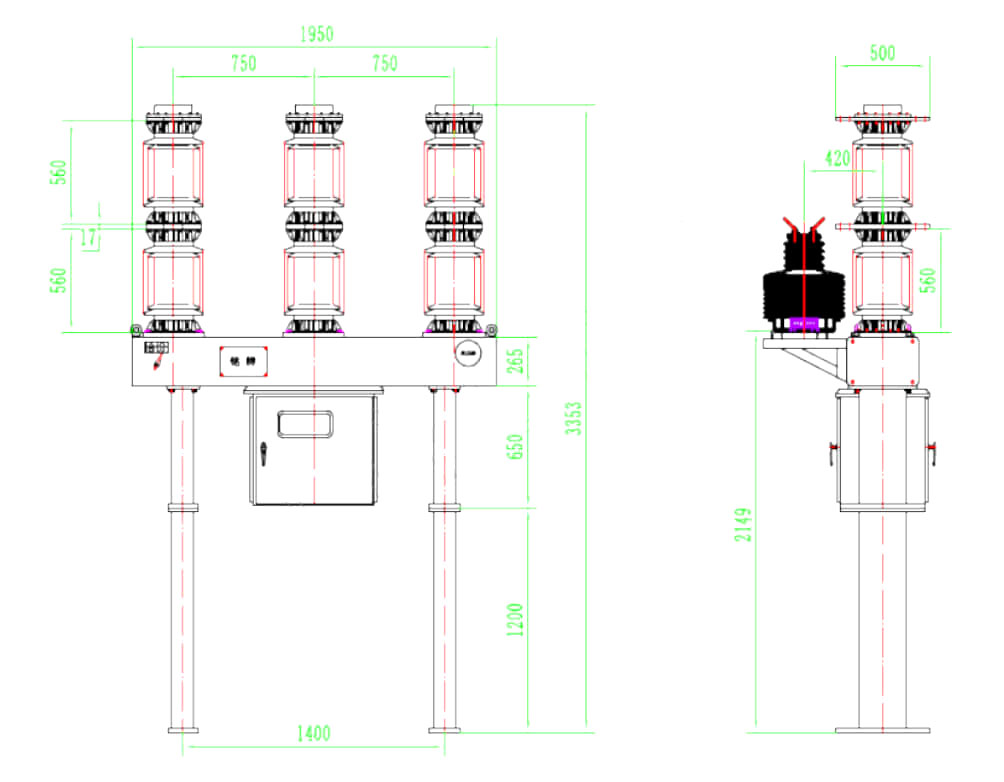 Produktet har utmerket brytningsytelse, bruker trykklufttypen bue -slukkende kammer, det elektriske levetiden er lang, erstatter ikke svovelheksafluoridgassen, den mekaniske påliteligheten er høy, det mekaniske levetiden er lang, kan fungere ofte; Hvert sett kan utstyres med 6-12 nåværende transformatorer for brukerens valg. Dette produktet vedtar den nye MKZ -modellen SF6 -pekertetthetsmåleren, trykkmåleravlesningen påvirkes ikke av temperaturendringen, enkel å bruke.