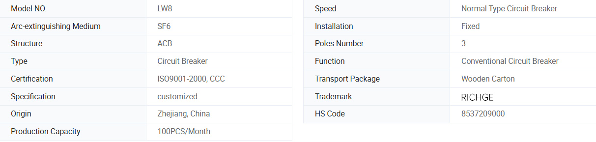 LW8-40.5, LW8A-40.5-serien Svovel heksafluorid-effektbrytere er trefaset AC 50Hz utendørs høyspent elektrisk utstyr, egnet for kontroll og beskyttelse av 40.5kV girkasse og distribusjonssystem, kan også brukes til tilkoblingsbrytere og åpne og lukke kondensatorbanker. Produktet kan brukes med CT14 vårmekanisme. Husbryteren samsvarer med National Standard GB1984-1989 AC Høyspent effektbryter og International Electrotechnical Commission Standard IEC56, IEC6220-100 Høyspenning AC-effektbryter.