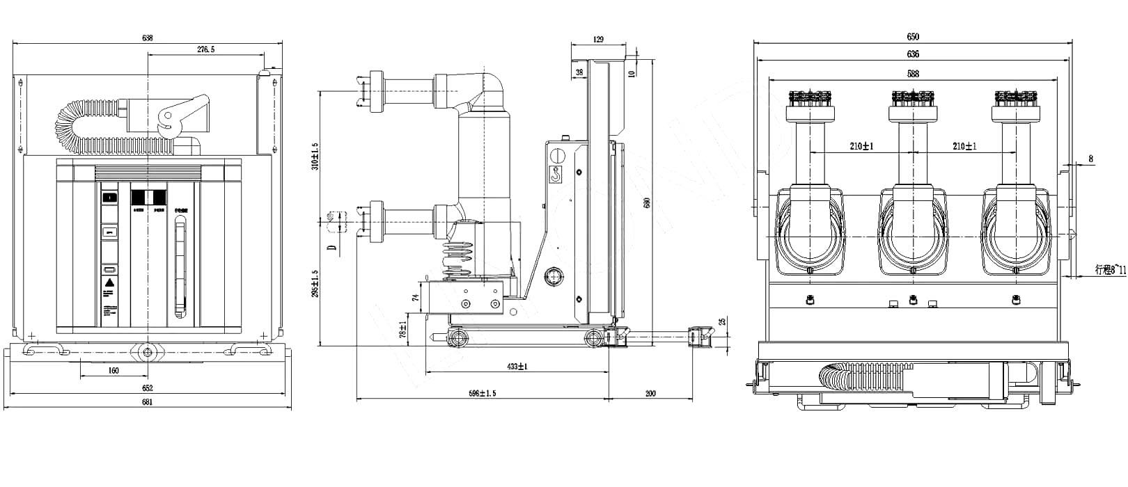 Dimensjoner av VSG-12/2000A Handcart Type Vacuum Circuit Breaker med fast stolpe